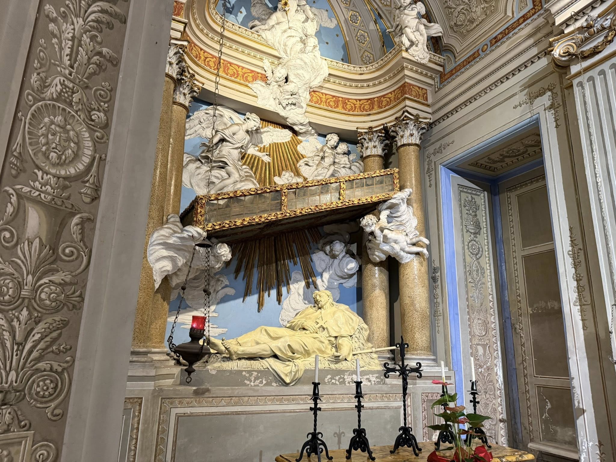 Ontem à noite, aqui em Roma, visitei a Basílica dos Santos Bonifácio e Aleixo, sendo este último (Santo Aleixo de Roma, Homem de Deus) celebrado hoje no Calendário Juliano Revisado. A basílica guarda aquilo que se diz ser a escada sob a qual Santo Aleixo viveu durante 17 anos, debaixo da varanda da casa dos seus pais e da sua esposa, em Roma, depois de os ter deixado secretamente durante os 17 anos anteriores, tornando-se irreconhecível como mendigo.