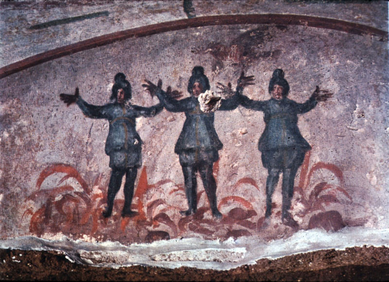 “Não venerastes uma imagem feita por mãos humanas, mas revestindo-se da couraça da essência não escrita, ó três vezes bem-aventurados, fostes glorificados na arena do fogo. E, permanecendo no meio da chama insuportável, invocastes a Deus, dizendo: ‘Apressa-Te, ó Misericordioso, e vem, como Clemente que és, em nosso auxílio, pois podes, se assim o desejares! (яко можеши хотяй)’.” (Kondakion dos Antepassados do Senhor)